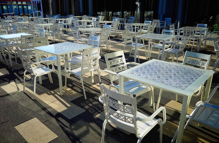 Chairs, tables, and sofas.
